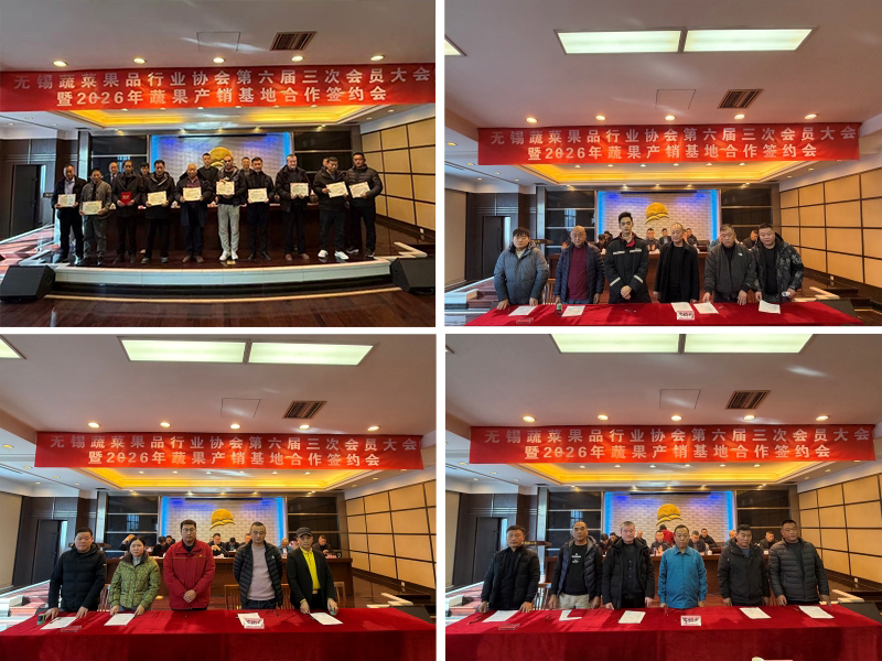 12月8日上午,无锡蔬菜果品行业协会六届三次会员大会暨2026年蔬果产销基地合作签约会在朝阳农产品大市场召开。无锡蔬菜果品行业协会会员、全国及无锡蔬果生产基地代表、蔬果行业相关单位及朝阳股份、天惠超市工作人员共167人参会。无锡日报、江南晚报、无锡广播电视台等主流媒体记者到会采访。  无锡蔬菜果品行业协会会长、Kaiyun开云董事长、总经理张庆卿作了题为《凝心聚力促发展 守正创新谱新篇》的报告,对协会2025年工作进行了总结,并对2026年主要工作要点作了展望。他号召全体会员认真贯彻党和国家的方针政策,持续推动产销对接,加强品牌建设,努力为无锡蔬菜果品行业的繁荣与发展贡献更大力量。  大会审议并通过了《无锡蔬菜果品行业协会2025年工作小结暨2026年工作要点》《2025年协会财务报告》《2025年协会监事会报告》。 在交流发言阶段,无锡朝阳股份有限公司总经理朱健祥、无锡天惠超市股份有限公司总经理刘彦、无锡蔬菜生产基地代表戚全芳分别结合行业现状与发展趋势分享经验、建言献策,鼓励全体会员高质量推进各项工作,争取更大成果。 朝阳集团顾问、协会上届会长杨兴德对协会六届三次会员大会的召开表示祝贺。他充分肯定协会过去一年在服务行业、促进产销等方面的工作成效,并指出,当前行业发展机遇与挑战并存,协会要坚持政治引领,深入学习贯彻党的二十大关于乡村振兴、农业强国等战略部署;要强化桥梁功能,精准服务会员需求,维护行业合法权益;要聚力产业升级,推动绿色生产、科技创新与品牌建设;同时要加强行业自律与自身建设。他勉励协会和全体会员坚定信心、开拓创新,为无锡蔬果行业高质量发展和新时代工商名城建设贡献更大力量。 在2026年蔬果产销基地合作签约会上,朝阳股份对2025年产销合作中的优秀单位进行了表彰。朝阳农产品大市场与全国蔬果生产基地、天惠超市与无锡本地蔬菜生产基地分别签订了新一年的产销合作协议。本次签约基地数量共计88个,签约总面积15.2万亩,同比上升36.12%,签约总上市量40.2万吨,同比上升31.52%。其中,天惠超市签约基地38个,与去年持平;签约基地面积680.5亩,同比上升1.8%;签约上市量7735吨,同比上升6.28%。
